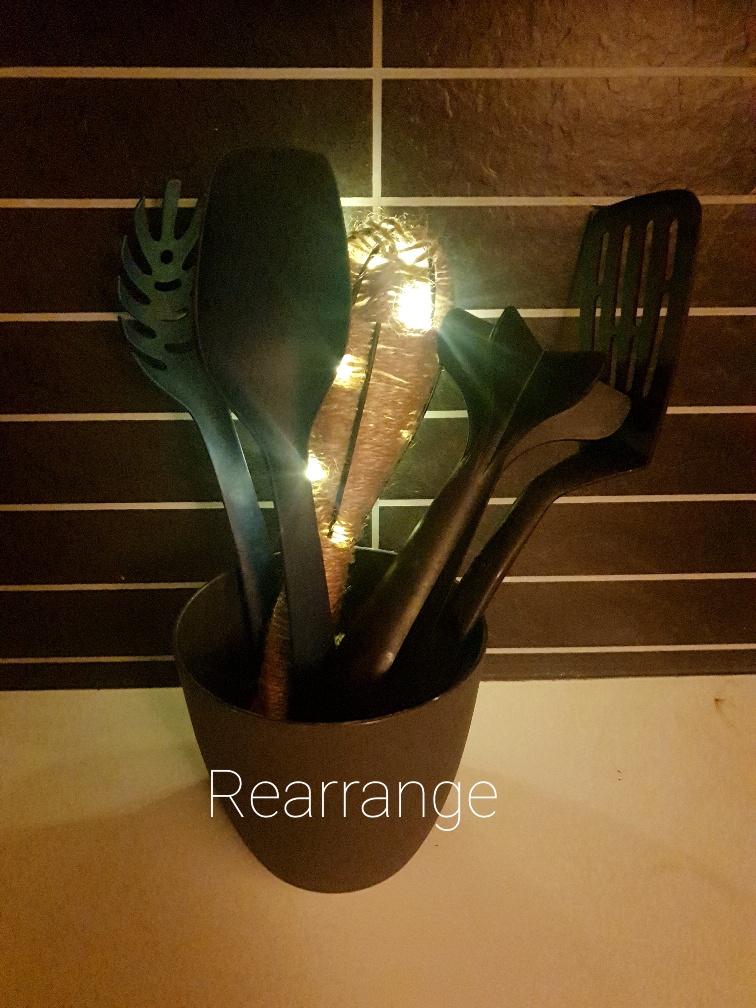 An other way is to make a multi tool, where spatula, whip,and other kitchen tools is adopted in the same package.